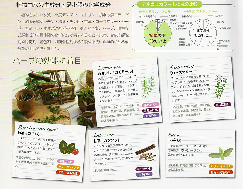 90%以上が植物エキスで作られた自然派染毛剤です。